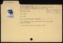 Description:   Wall fragment from just below the rim; egg pattern above. On the wall, part of a head, left.