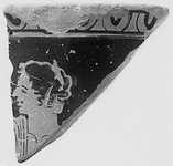 | Description: | Rim fragment of a skyphos with slightly flaring lip. On lip outside, egg pattern; below, head of a youth, left. | |