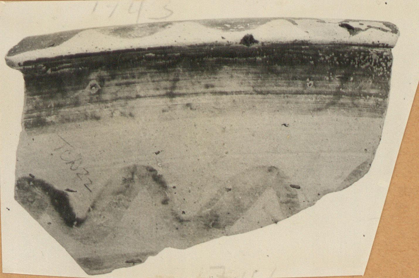 Wavy line on top; reserved panel below. Similar to P 1745. Glazed inside.