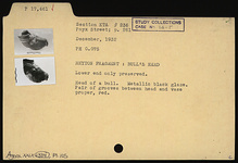 | Description: | Lower end only preserved. Head of a bull. Pair of grooves between head and vase proper, red. Metallic black glaze. | |