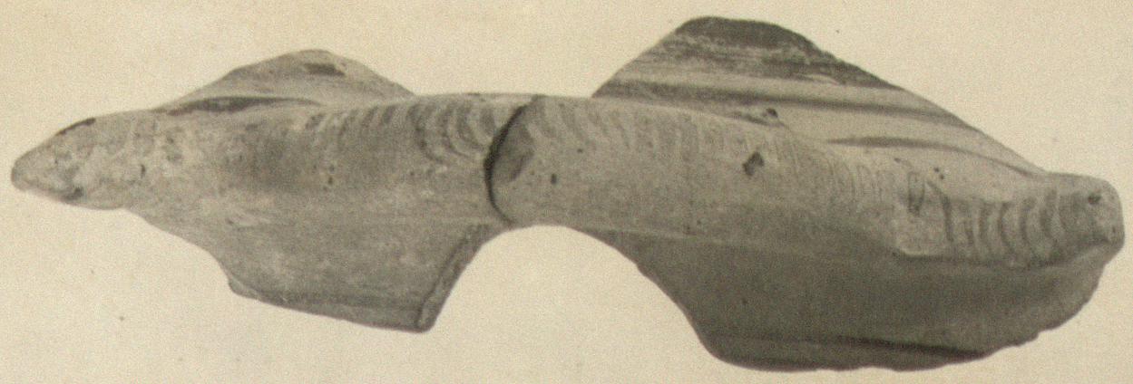 | Description: | Fragment of bowl preserving handle with horns. Decorated with vertical lines; a band at the rim and lines below; a band inside. Subgeometric style. | |