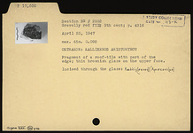 | Description: | Fragment of a roof tile with part of the edge. Incised through the glaze: <graphic> Thin brownish glaze on the upper face. | |