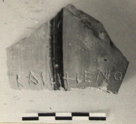 | Description: | From a semi-glazed krater with band outside. Incised outside: <graphic> Red glaze inside. Joins P 17650 (ΝΝ 2621). | |