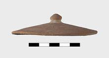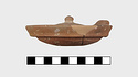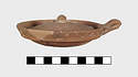 | Description: | Small fragments missing. Shallow pot with one handle; the rim flanged inside to receive the lid. Coarse micaceous red clay; traces of burning inside. Lid slightly convex, with knob handle. | |