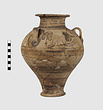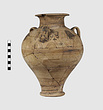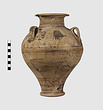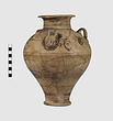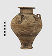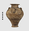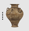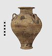 | Description: | A few small fragments of body missing. On shoulder, in handle zone, ivy leaf and trefoil spiral design (cf. Blegen (1937), Prosymna, no. 412: I, p. 403; II, fig. 106). Glaze bands on lower body; the glaze much worn and peeled, the surface of the clay greenish. Ring foot. Lip flat on top. | |