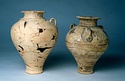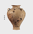 Description:   Mended from very many pieces; a few left over; a few missing; the surface chipped. High-shouldered jar, undecorated; creamy buff surface.