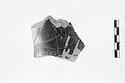 | Description: | Very fragmentary; fragments made up into four groups. a) Lower parts of two draped women, left; then black zone with white dots, then inverted rays. b) Upper part of a woman's body, left, probably the left-hand figure on a). In front of her a man, left arm and hand only preserved. c) Heads of horses, one of them white, and the elbow of a man (the one on b?). d) Inverted rays. Lavish use of white and red. Interior, horizontal bands, black and reserved. | |