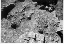 | Description: | The handle missing at one side, and the end of the spouted mouth; also many small body fragments and chips; the pot warped and the fabric flaky. Low ring foot. Groups of bands around foot; around widest part of body, and below shoulder. On the shoulder, groups of diminishing chevrons. Outer face of handle glazed. Ring and dot on the top of the false-mouth knob. No decoration inside ring foot. Slightly greenish, pale buff clay; dull brown glaze, badly peeled. Inside the pot, unmended chips from the inner wall. | |