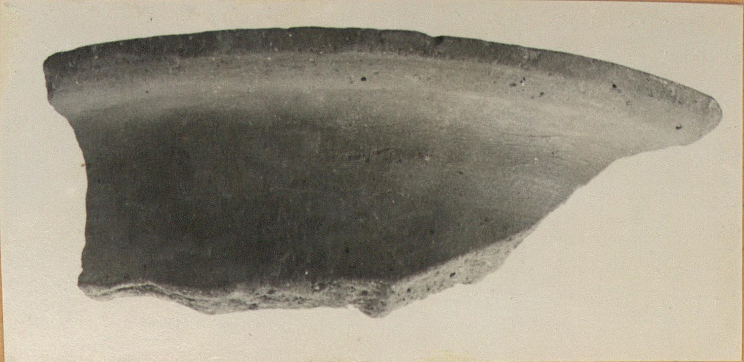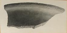 | Description: | Rim fragment of household jar with flat projecting lip. An unusual profile, from a jar. Household Ware. | |