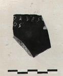 | Description: | From the wall of a pot with good black glaze outside, thin streaky brownish glaze inside. Incised outside: <graphic> | |