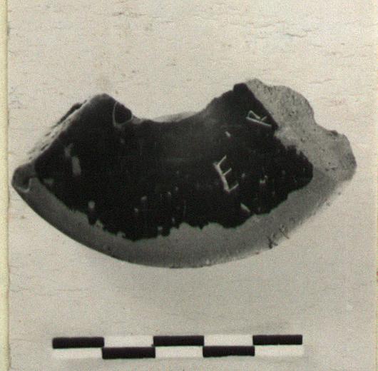 | Description: | Part of a kylix foot; the glaze black above, red below; the torus foot reserved. Incised underneath: <graphic> | |