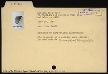 | Description: | Rim fragment of a cooking ware pitcher. Incised outside: <graphic> | |