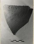 | Description: | From the lower wall of a plain amphora. Incised outside: <graphic> Very heavy fabric; micaceous pinkish-buff clay. | |
