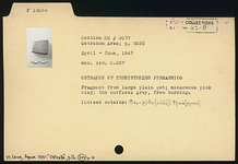 | Description: | Fragment from large plain pot. Incised outside: <graphic> Micaceous pink clay; the surfaces gray, from burning. | |