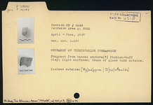 | Description: | Fragment from banded amphora(?). Joined to P 18485. Incised outside: <graphic> Pinkish-buff clay; light surfaces; trace of glaze band outside. | |