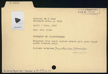 Description:   Fragment from heavy walled closed pot; good black glaze outside only.