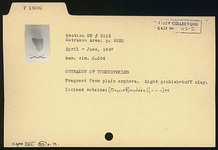 | Description: | Fragment from plain amphora. Incised outside: <graphic> Light pinkish-buff clay. | |