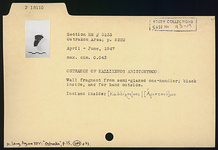 | Description: | Wall fragment from semi-glazed one-handler; black inside and for band outside. Incised inside: <graphic> | |