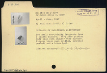 | Description: | Two small non-joining fragments from a banded amphora. Incised outside: <graphic> Very pale pinkish-buff clay with lighter buff surface. Streaky brown wash outside, somewhat peeled; and a brown band. | |