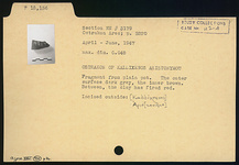 | Description: | Fragment from plain pot. Incised outside: <graphic> The outer surface dark gray, the inner brown. Between, the clay has fired red. | |
