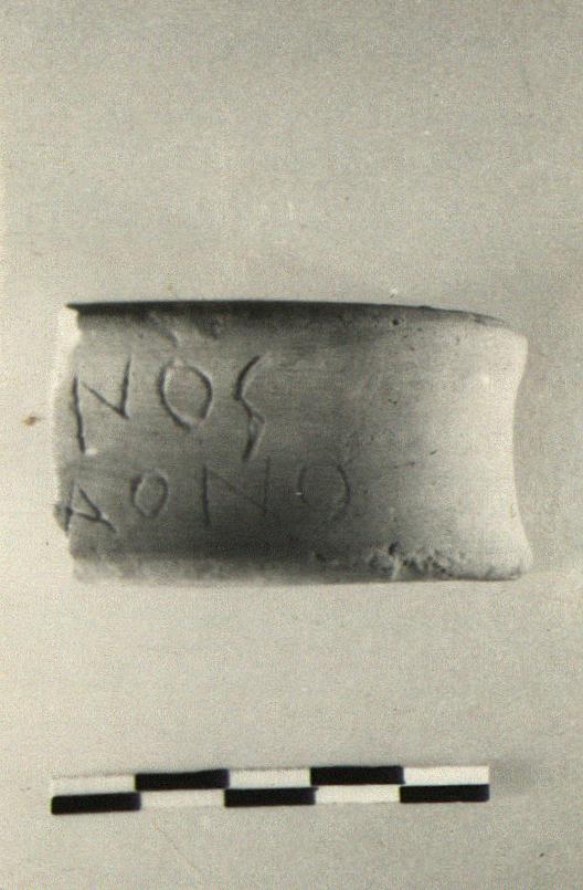 | Description: | Band handle from semi-glazed oinochoe. Incised on the top: <graphic> Pinkish-buff clay. | |