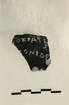 | Description: | Wall fragment from open pot. Incised inside: <graphic> Streaky black glaze inside and out. | |