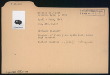 | Description: | Fragment of black glaze kylix foot, torus edge reserved. Incised beneath: <graphic> | |