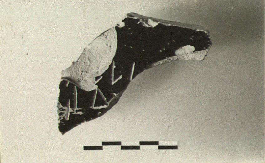 | Description: | Fragment from floor preserving part of the heavy ring foot of a black glazed bowl or stemless cup. Incised on the floor: <graphic> | |
