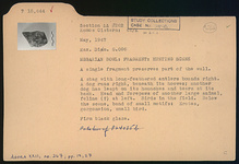 | Description: | A single fragment preserves part of the wall. A stag with long-feathered antler bounds right. A dog runs right, beneath its hooves; another dog has leapt onto its haunches and tears at its back. Head and forepaws of another large animal, feline(?) at left. Birds in the field. Below the scene, band of small motifs: Erotes, gorgoneion, small bird. Firm black glaze. | |