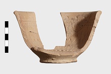 | Description: | Mold for the bowl P 18683 (ΔΔ 301). Decoration chiefly of leaves with hatched interior bands. Carefully made, inside and out, and crisp. | |