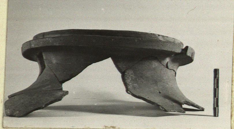 | Description: | Mended from many pieces; about two-thirds of the circumference of the rim preserved, with a little of the shoulder. From a large soup-kettle with broad projecting rim, deeply flanged to take a lid. Handmade of micaceous cooking ware fabric, brown to gray. | |