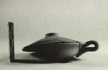 | Description: | The lid mended from several pieces; small fragments missing. Of the bowl only a small part of the rim and wall remains, with the handle. Similar in shape and fabric to P 19055 (ΝΝ 4164). ADDENDA P 19055: Shallow bowl, the bottom flattened; the slightly flaring rim ridged inside to hold the lid. Shallow domed lid with flat knob set off from the lid by a groove. Vertical band handle rising from the rim. Pinkish-buff clay; unglazed. | |