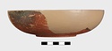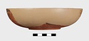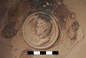 Description:   Several pieces preserve floor and about half of wall and rim. Very low ring foot; gently curving walls, plain rim. On floor a raised medallion: within a single groove, profile bust of Augustus with fillet, left.