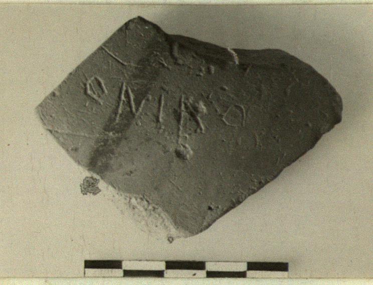 | Description: | Fragment from the wall of a semi-glazed krater. Incised outside: <graphic> Black glaze inside; reddish band outside. | |