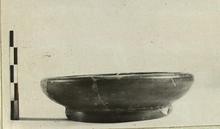 Description:   Mended from several pieces; complete. Small shallow bowl on ring foot with concave inner profile; rounded rim, slightly inturned.