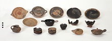 | Description: | Fragments of body and rim missing; and about half of the lid. Coarse handmade bowl with round bottom and one vertical handle; rim flanged inside to receive lid. Convex lid with knob handle. Cooking ware fabric of coarse brown-buff clay, streaks of thin black glaze wash outside. | |