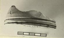 | Description: | From bottom of cylindrical vessel with groove around outside at base of wall. Flat bottom. Pinkish-buff clay; no glaze. | |
