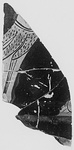 Description:   Mended from three pieces. From the lower wall of a large pot; thin rough black glaze inside. Purple band as ground line. Leg, wearing high boot with hanging lappets; the edge of some drapery to the right of it.