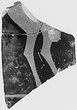 a) Mended from two pieces; part of a reserved ground line and the back legs of a horse, right.