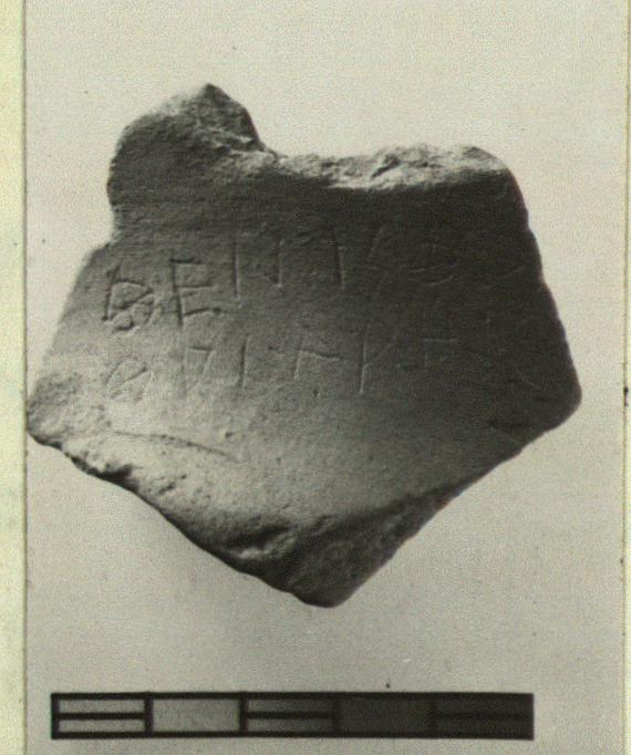 | Description: | From the upper shoulder and base of neck of a coarse unglazed amphora. Incised outside: <graphic> | |