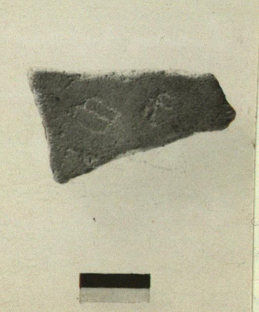 | Description: | From the wall of a coarse cooking ware pot. Incised inside: <graphic> Micaceous clay. | |