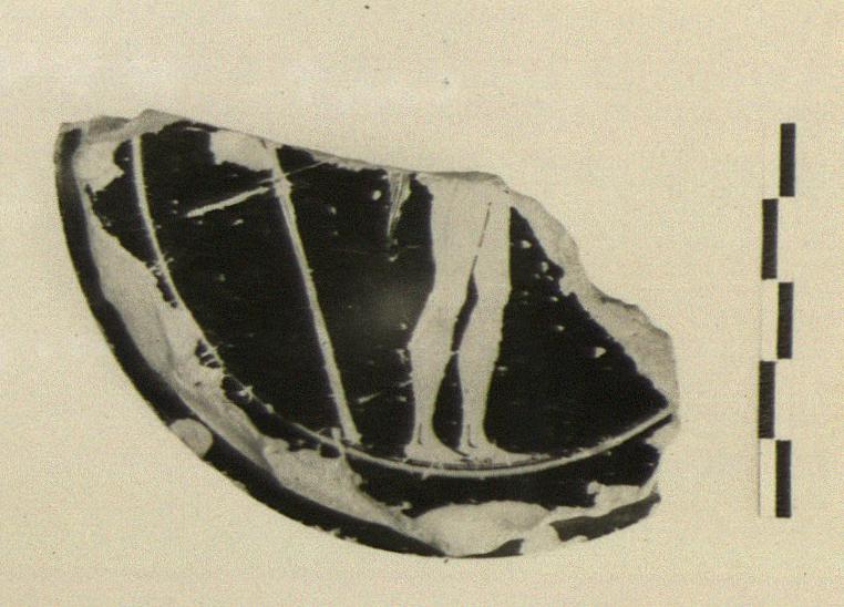 Description:   Section of heavy ring foot and floor preserved. In medallion framed by single line, a youthful satyr, standing right. In field at left, a staff(?) or thyrsos.