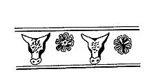 | Description: | Parts of rim and upper wall preserved. Upper terminal band: alternating boukephala and rosettes. Wall: rampant goats, Eros with torch; below, pyramidally arranged small imbricated leaves. Pinkish-buff clay; glaze shading brown to red. Cf. P 9399, P 11435. | |