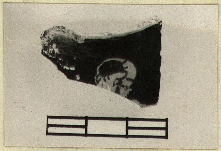 | Description: | Fragment from the shoulder of a small oinochoe; glazed to base of neck only inside. Outside, right, the head of a child satyr(?). Inscribed to left of head: Κ Α Λ Ο Σ | |