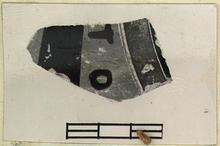 | Description: | Broken all around. Part of column and shield and two letters. Purple on rim of shield. <graphic> | |