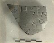 | Description: | Fragment of wall of semi-glazed krater; glaze red inside. Inscribed outside: <graphic> | |