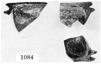 | Description: | Two corner fragments of a square or rectangular flat-bottomed shallow bowl (or lid). At each corner a projecting prong. Attic. Worn black glaze, red in places. | |