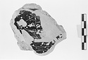 | Description: | Fragment from a large thick plaque; part of surface of back preserved. Two bearded heads and outstretched arms to right. Red, now faded, for forehead hair and for beards. Surface damaged. Two converging incised lines, probably intentional, on back. | |