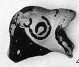 | Description: | Plastic head of a griffin with gaping mouth. Broken at neck; ears and tip of tongue missing. Pinkish-buff clay. Decoration in dull black glaze, worn on one side. The animal's neck glazed solid, and his tongue; ears, eyes and jaws outlined. | |