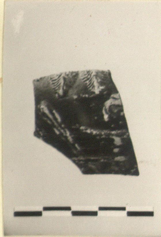 Description:   Above, end of boat with two oars. Below, tail of fish and tips of leaves.